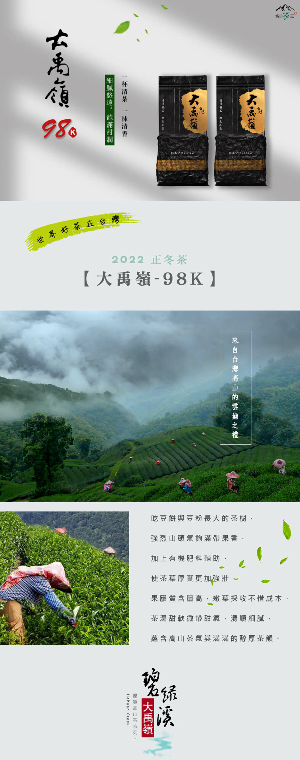 首頁 大禹嶺 【大禹嶺.98K】2022 冬茶 售罄🔍 【大禹嶺.98K】2022 冬茶 已銷售 : 25斤 . 【海拔】:2600公尺~2700公尺 【品種】:軟枝烏龍 【採茶方式】:全人工採收,一芯二葉 【發酵度】:16%~20% 【熟度】:生茶~青茶.無烘焙 【生長期】:2022.冬茶 【包裝內容】:二兩 / 75g 此商品目前已售完無法訂購 商品資訊 額外資訊 評價 (0) 規格 一斤, 三斤, 五斤 商品評價 目前沒有評價。 搶先評價 “【大禹嶺.98K】2022 冬茶”取消回覆發佈留言必須填寫的電子郵件地址不會公開。 必填欄位標示為 *您的評分 * 評分… 完美 很好 一般 不錯 很差 名稱 *電子郵件 *您的評價 * 在瀏覽器中儲存顯示名稱、電子郵件地址及個人網站網址,以供下次發佈留言時使用。 送出 相關商品 售罄【大禹嶺.碧綠溪上游】2023 春茶 大禹嶺 售罄2023冬茶【大禹嶺.合歡溪王】 大禹嶺, 年節禮盒 售罄2024冬茶【大禹嶺仙丹茶】 1斤、3斤、5斤 2024冬茶, 冬茶, 大禹嶺, 年節禮盒